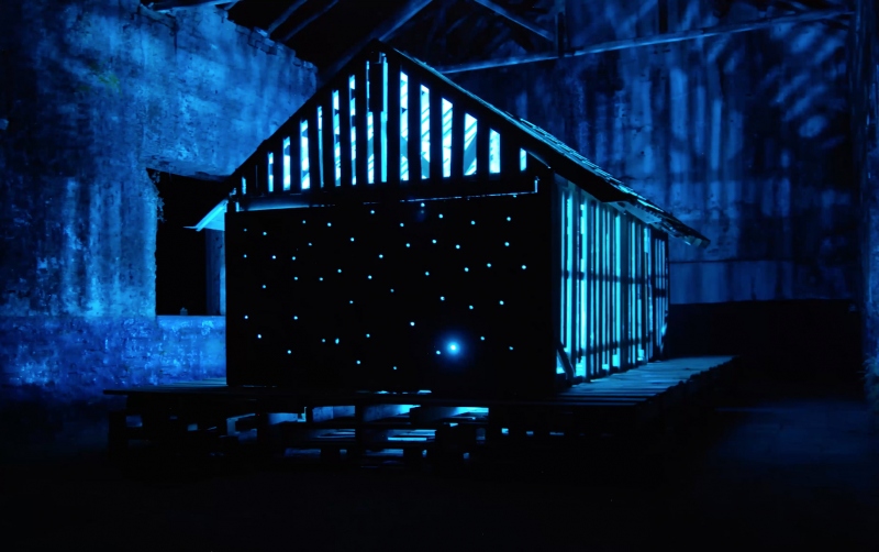 Moja praca mówi o kontraście materiałów. Krowie placki, symbolizujące przeszłość, to silna tradycja w Indiach, niebieskie światło symbolizujące duchowość, a także przyszłość, szybki rozwój techniczny, którego wynikiem jest również nierozwiązywalna sprzeczność...
